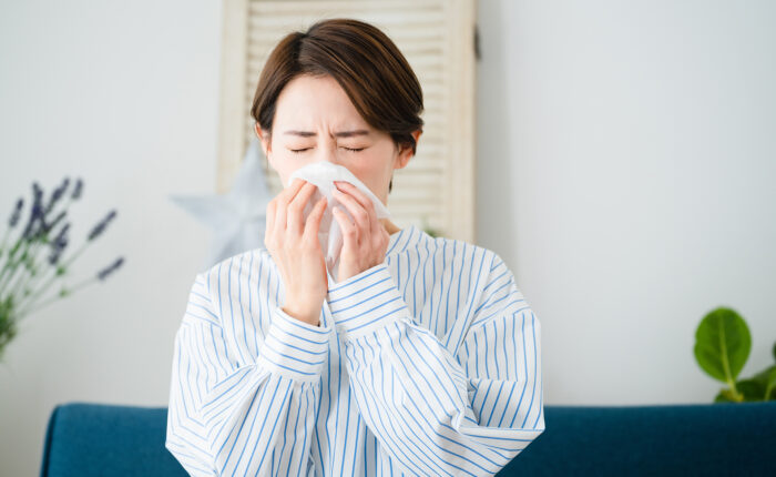 花粉症とは、スギやヒノキなど植物の花粉が体内に入ることで、免疫が過剰反応を起こしてしまうアレルギー症状のこと。主な症状は、くしゃみ、鼻水、鼻づまり、目のかゆみなどですが、人によっては肌荒れや倦怠感、集中力の低下なども起こります。